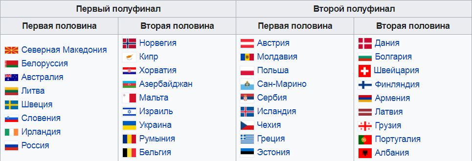 Жеребьевка и распределение стран в полуфиналах остались такими же.