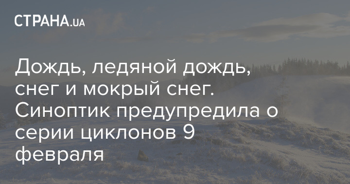 Серия циклонов, проносящихся сейчас через Украину, обеспечивает богатое разнообразие погоды. В один день, 9 февраля, в разных частях страны будут сразу снег, мокрый снег, дождь, ледяной дождь, сильный мороз на севере и до +10 на юге.