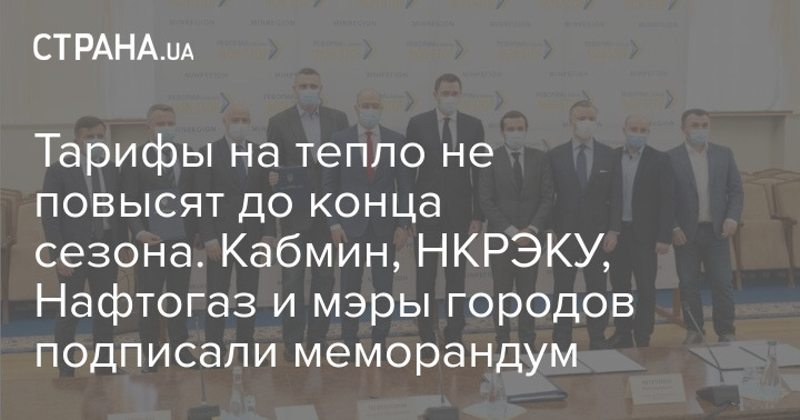 Представители Кабмина, "Нафтогаза", Национальной комиссии, осуществляющей госрегулирование в сферах энергетики и коммунальных услуг (НКРЭКУ) и мэры городов Украины подписали Меморандум, который позволит не повышать тарифы на горячую воду и отопление до конца нынешнего отопительного сезона.