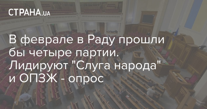 Если бы выборы в Верховную Раду состоялись бы в ближайшее время, то в парламент прошли бы четыре партии: "Слуга народа", "Оппозиционная платформа - За жизнь", "Евросолидарность" и "Батькивщина".