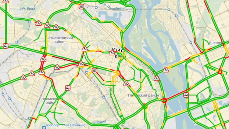 С каждым днем киевляне простаивают в пробках все дольше, yandex.ua/maps