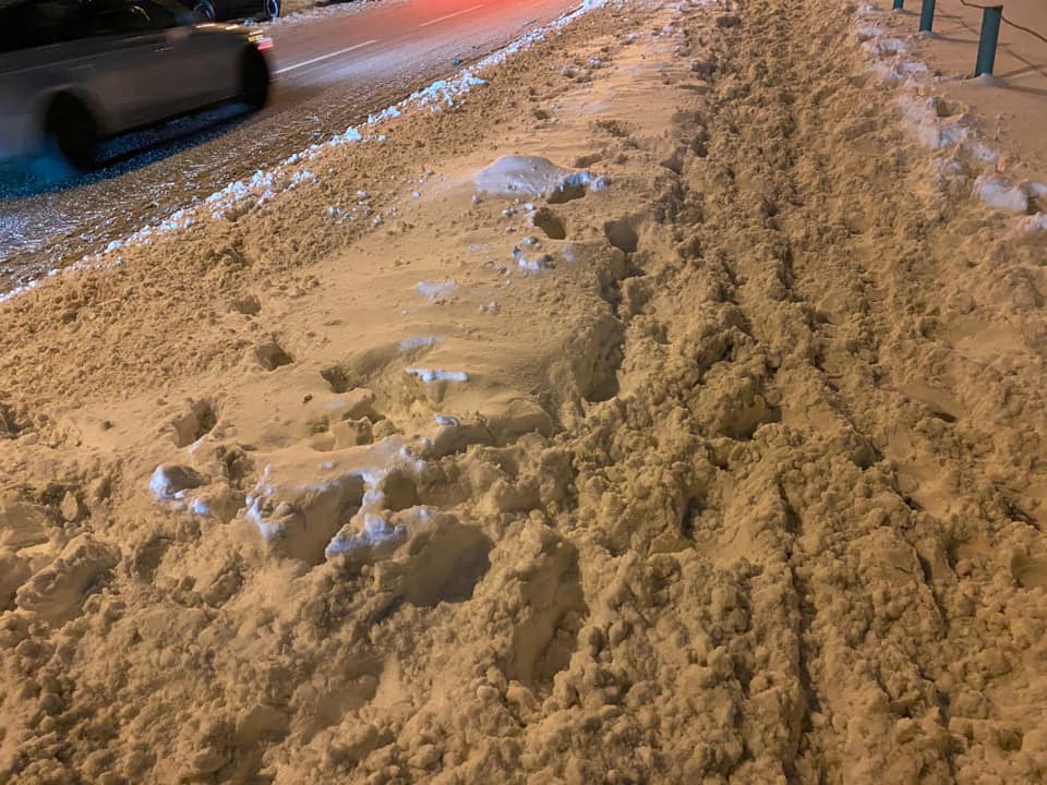 Некоторые жители пишут в соцсетях о том, что снег не вывозят, а оставляют на обочине. Это фото сделано киевлянкой Татьяной Зинчук на Оболонском проспекте/12б.