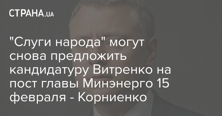 Фракция "Слуга народа" после заседания 15 февраля может снова предложить кандидатуру Юрия Витренко на пост министра энергетики. На данный момент этот вопрос продолжает обсуждаться.