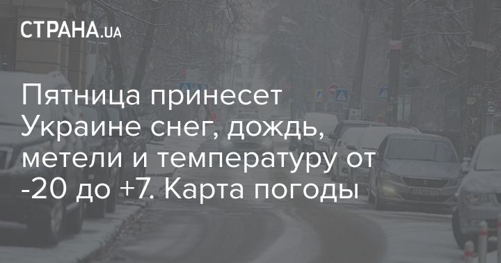 Пятница принесет Украине снег, дождь, метели и температуру от -20 до +7. Карта погоды