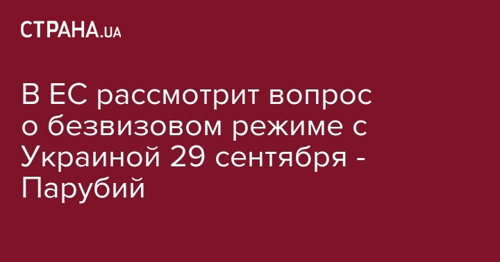 Европарламент 29 сентября рассмотрит вопрос безвизового режима с Украиной. Об этом написал на своей странице в Facebook спикер Верховной Рады Украины Андрей Парубий.
