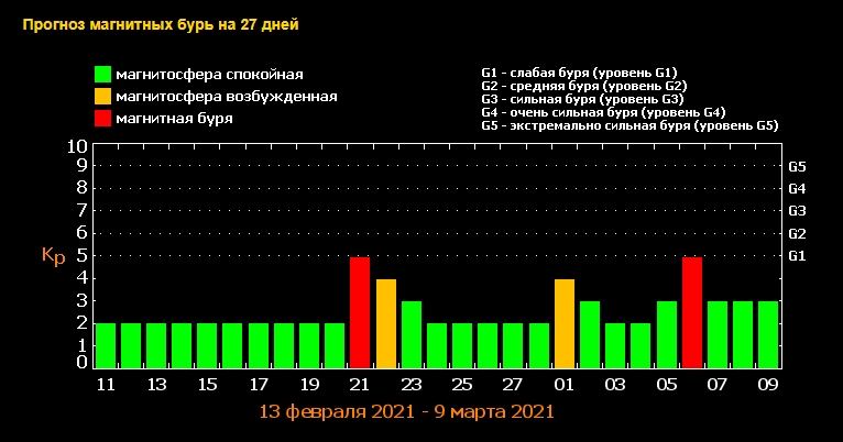 6 марта снова ожидается геомагнитное колебание уровня G1.