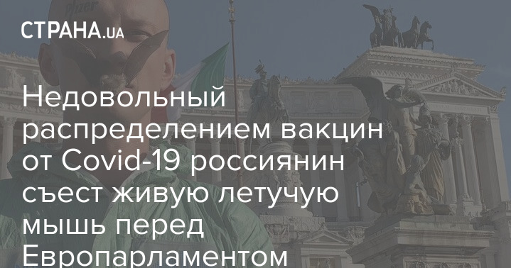 Российский активист Петр Давыдченко заявил, что собирается съесть живую летучую мышь у главного входа в Европарламент. В четверг, 18 февраля, в полдень по местному времени (в 13:00 по Киеву - Ред.), мужчина проведет демонстрацию поедания в знак протеста против того, что, по его словам, является несправедливым распространением вакцины от коронавируса.