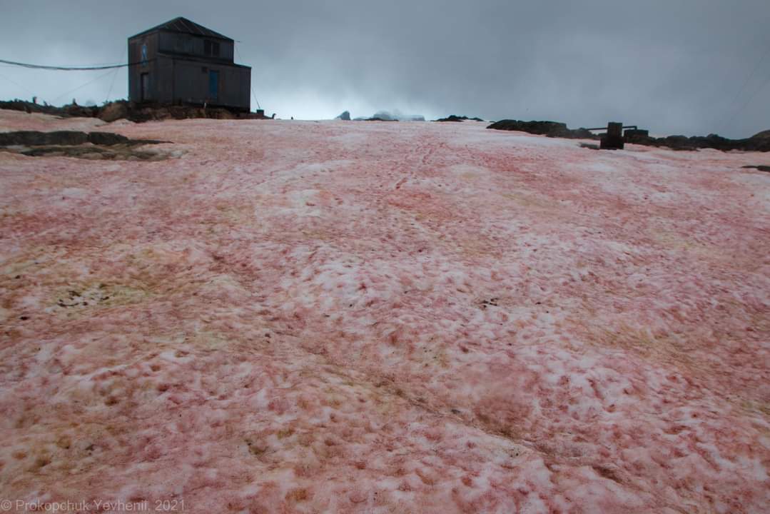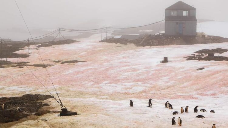 В Антарктиде недалеко от украинской станции "Академик Вернадский" ученые обнаружили "цветение" снега - вместо белого он стал розовым и зеленым.