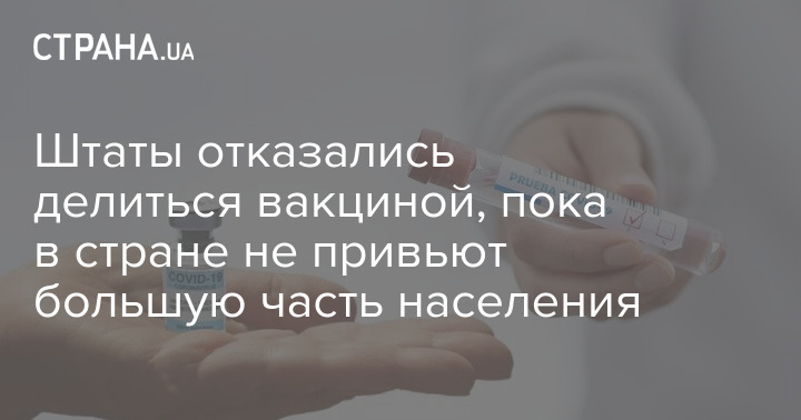 "Администрация Байдена не будет жертвовать бедным странам ни одну из доз вакцины против коронавируса, до того, как большинство американцев будет вакцинировано", - сказал один из высокопоставленных чиновников администрации.