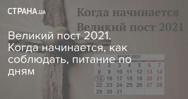 Пост будет продолжаться семь недель и завершится 1 мая (суббота). На следующий день, 2 мая, наступит Воскресение Христово - Пасха 2021.