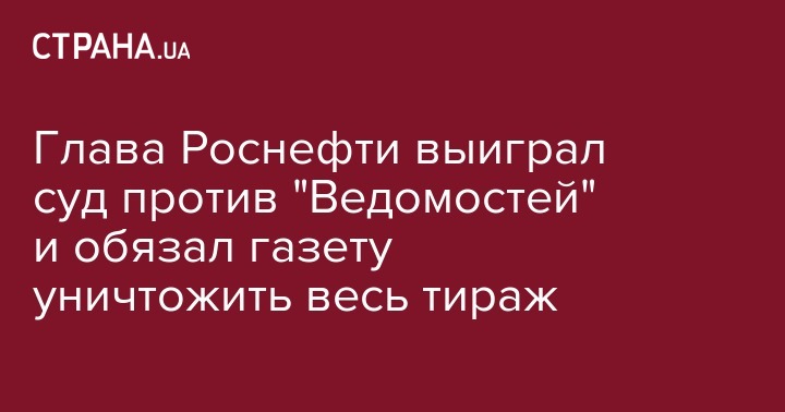 Глава Роснефти выиграл суд против "Ведомостей" и обязал газету уничтожить весь тираж
