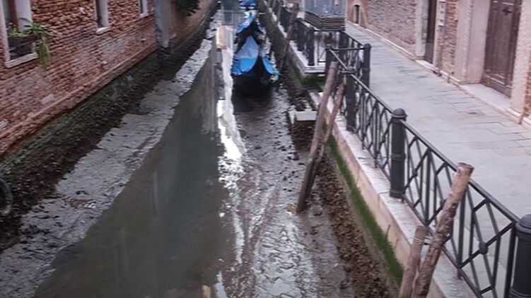 В Венеции, где самый известный карнавал проведут онлайн, низкие приливы привели к редкому для этого города явлению - часть каналов практически высохла.