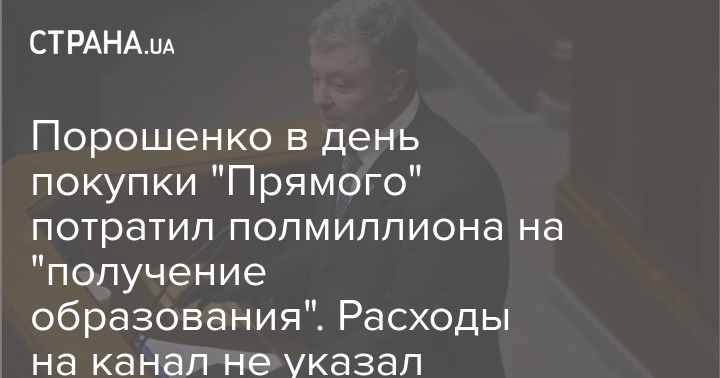 Экс-президент Украины, а ныне нардеп Петр Порошенко, который заявил о покупке телеканала "Прямой", в день этого приобретения потратил полмиллиона гривен. Именно такая сумма указана политиком в электронной декларации, которую он подал 28 февраля, таким образом сообщив о существенных изменениях в имущественном состоянии.
