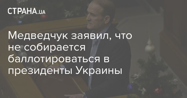 Глава политсовета партии "Оппозиционная платформа - За жизнь" Виктор Медведчук заявил, что не будет баллотироваться в президенты Украины, потому что в стране, на его взгляд, должна быть парламентская форма правления.