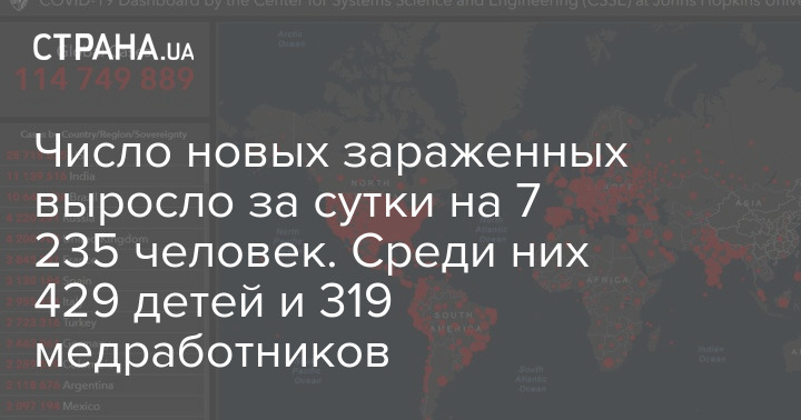 По состоянию на утро среды, 3 марта, количество зараженных коронавирусом в Украине увеличилось на 7 235 человек.