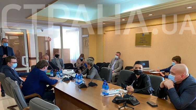 Рассмотрение вопроса началось с требования члена комитета Сергея Швеца к ведущей "Першого незалежного" Диане Панченко, предъявить журналистское удостоверение телеканала. На это Панченко ответила, что государственные органы не дают аккредитацию журналистам "Першого незалежного".