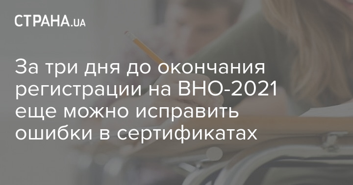 "Осталось три дня, чтобы зарегистрироваться для участия во внешнем независимом оценивании 2021 – регистрация завершается 5 марта. До этого дня можно внести изменения в персональные данные участника ВНО, если в сертификате участника обнаружена ошибка", – говорится в сообщении МОН.