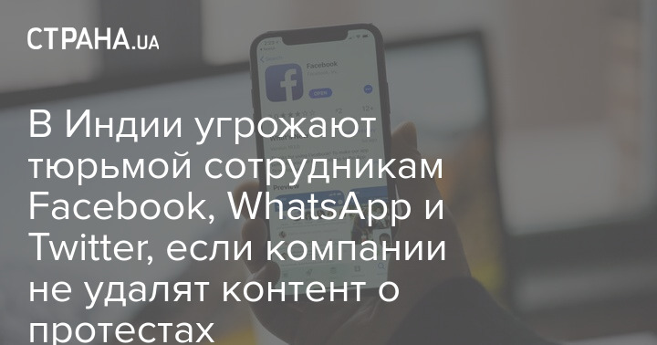 Правительство Индии пригрозило посадить в тюрьму сотрудников компании Facebook Inc, в частности ее подразделений WhatsApp и Twitter Inc. Угрозу воплотят, если работники не выполнят требования и не удалят данные, "подрывающие национальную безопасность". Речь идет об информации о протестах индийских фермеров, которая попала в мировые СМИ.