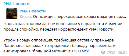 Все это свидетельствует о том, что острый политический кризис в Армении только углубляется.