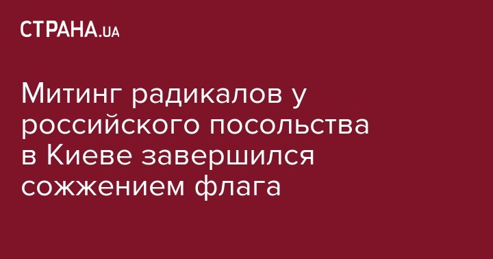 Митинг радикалов у российского посольства в Киеве завершился сожжением флага