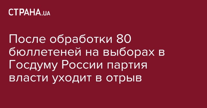 "Единая Россия" на выборах в седьмую Госдуму увеличила отрыв, обеспечивая себе конституционное большинство по итогам обработки 80% протоколов 54,28% голосов избирателей. Кроме того, по предварительным данным, в Госдуму проходит шесть партий: четыре парламентские, "Родина" и "Гражданская платформа", тогда как при обработке половины протоколов в нижнюю палату парламента могли пройти девять партий.