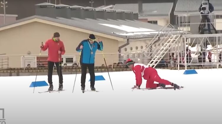 Лукашенко "победил" в лыжной гонке. Скриншот из видео
