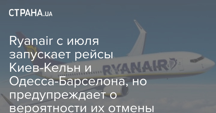 Ryanair с июля запускает рейсы Киев-Кельн и Одесса-Барселона, но предупреждает о вероятности их отмены