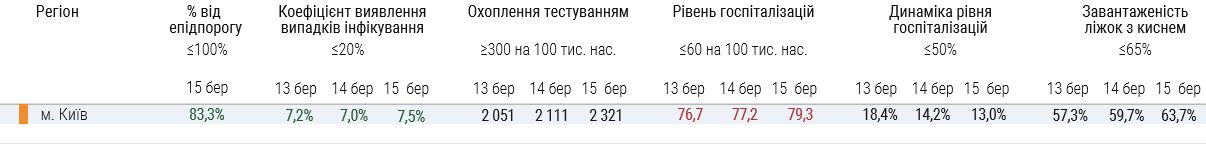 Судя по данным Минздрава, в последние три дня столица превышает один показатель - уровень госпитализаций и он постоянно растет. 13 марта - 76,7 на 100 тыс населения, 14 марта - 77,2, 15 марта - 79,3. При допустимом максимуме 60 госпитализаций на 100 тысяч населения.