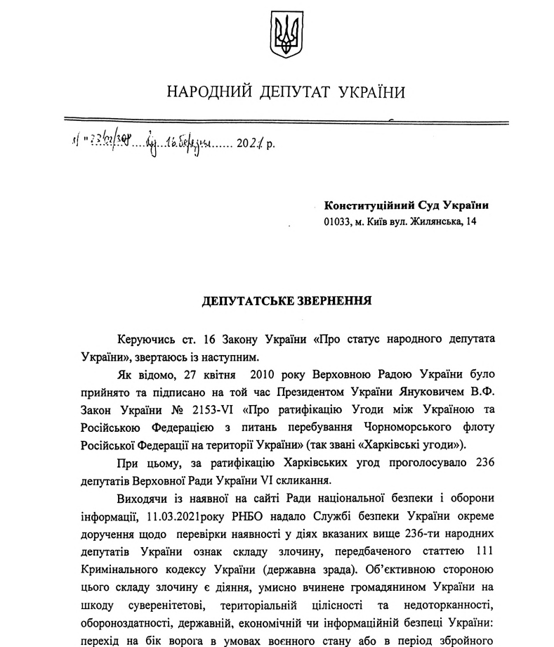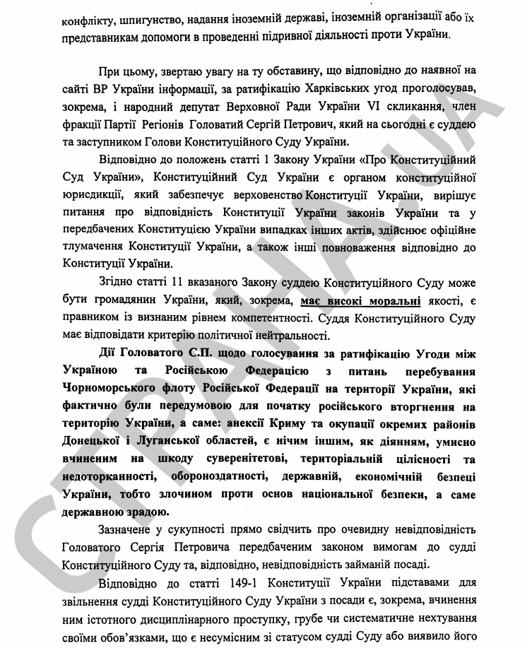 В тоже время Головатый был в числе депутатов, голосовавших за Харьковские соглашения в 2010 году. Именно это и стало одним из формальных оснований, чтоб поставить вопрос о соответствии его занимаемой должности.