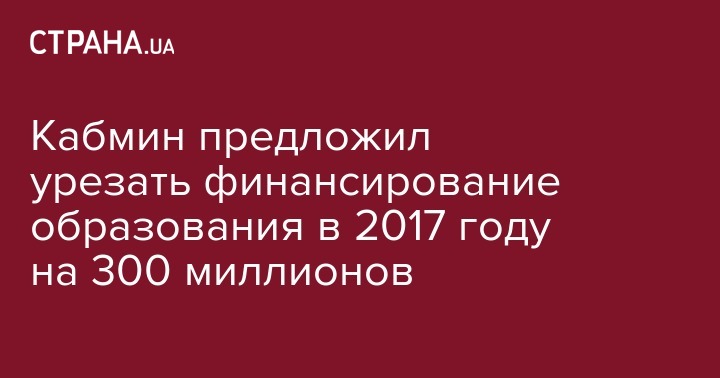 В 2017 году финансирование Министерства образования и науки будет сокращено на 300 миллионов гривен, а именно до 70,6 млрд гривен. Об этом говорится в проекте Госбюджета, поданном в парламент 15 сентября, передают "Украинские Новости".
