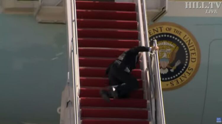 Байден несколько раз упал, поднимаясь по трапу самолета. Видео