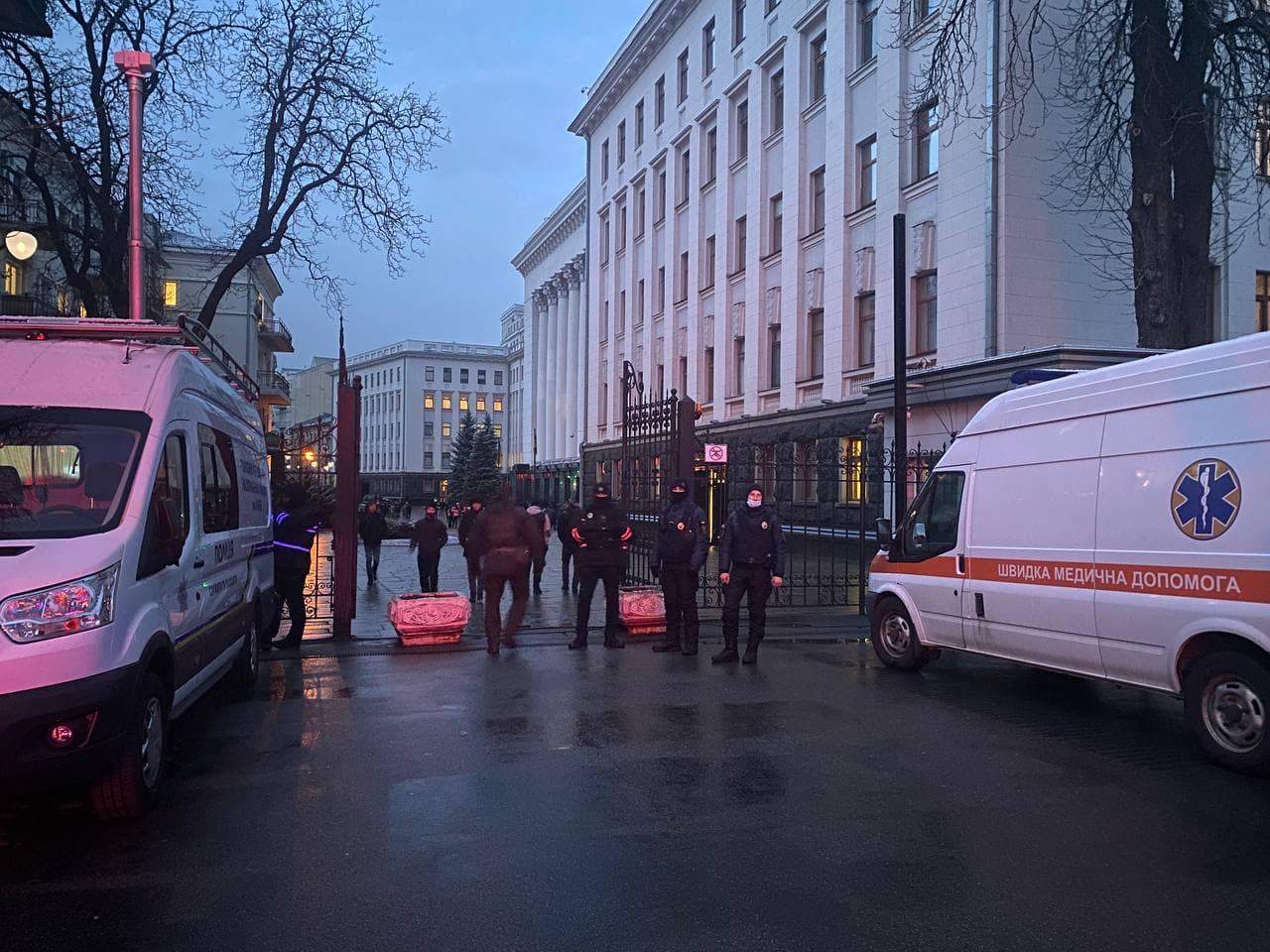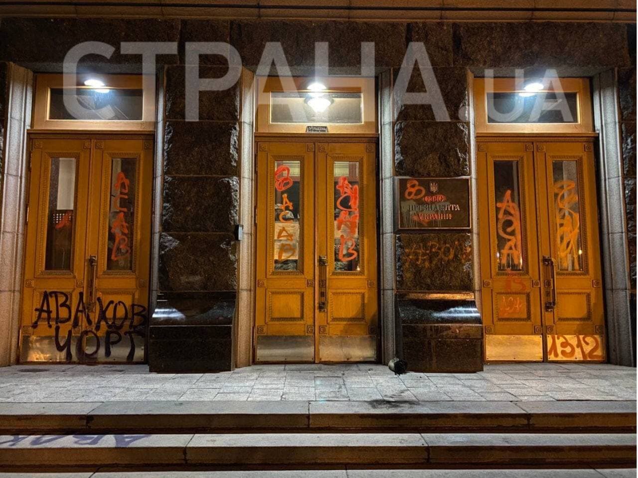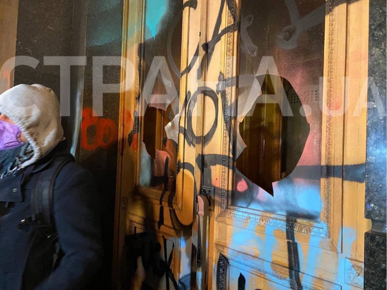20:11 Разбитые стекла входных дверей Офиса президента Украины.