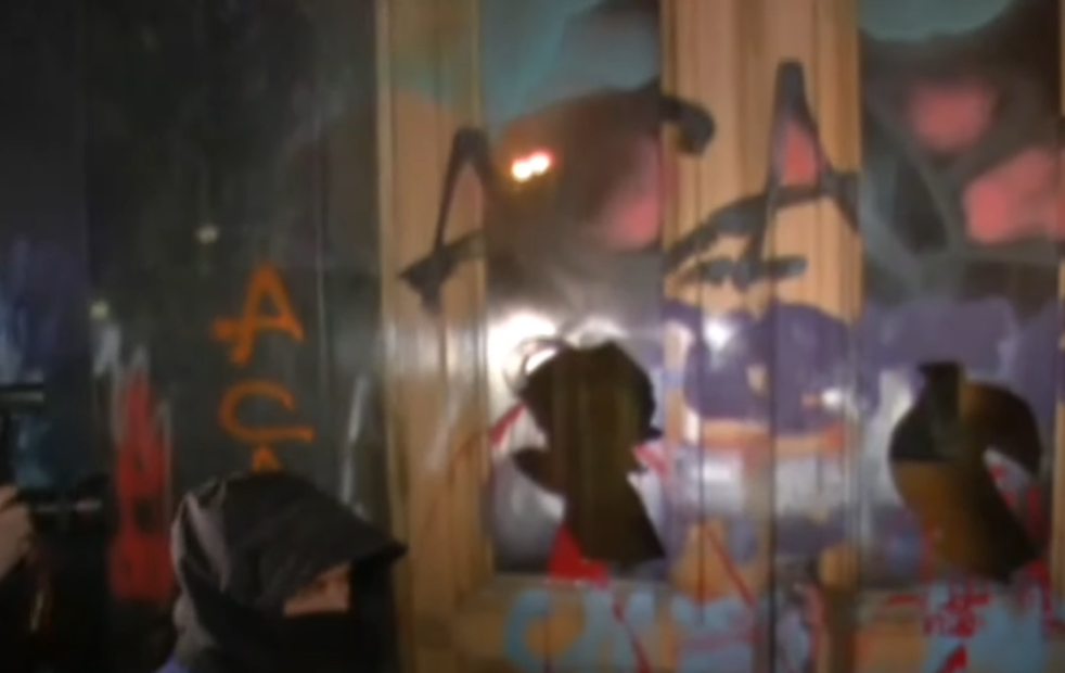 19:48 Бросают файеры в окна ОП, несколько окон разбито. Полиция не мешает.