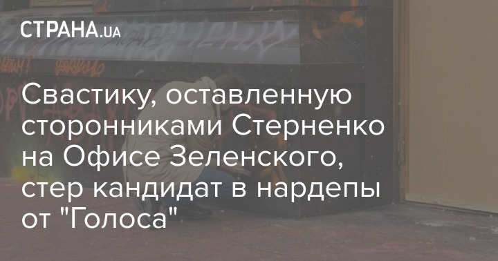 Свастику со здания Офиса президента, оставленную там после митинга в поддержку радикала Сергея Стерненко, отмыли не киевские коммунальщики, а местный житель, политолог, бывший кандидат в народные депутаты от "Голоса" (номер 27 в списке) Николай Давыдюк.