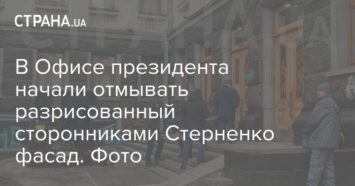 Напомним, с момента погрома прошло уже полтора дня. По состоянию на утро понедельника, 22 марта, на фасаде здания Офиса президента оставались все надписи, стерли только свастику. Кроме того, сняли центральные двери здания, в которых сторонники Стерненко разбили окна.
