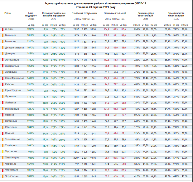 По состоянию на вторник, 23 марта, в "красной" зоне находятся: