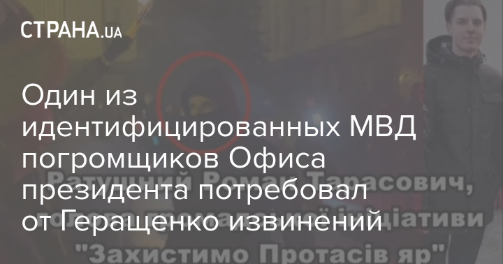 Роман Ратушный, который по информации "Страны" был координаторам погрома на Банковой, потребовал от замглавы МВД Антона Геращенко извинений и опровержения обнародованной им информации, что он являлся участником событий 20 марта.