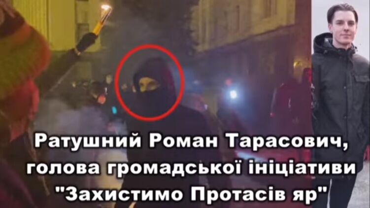 Роман Ратушный заявил, что в видеоролике содержится его персональная информация: фотография с подписью "Ратушный Роман Тарасович, глава общественной инициативы "Защитим Протасов яр".
