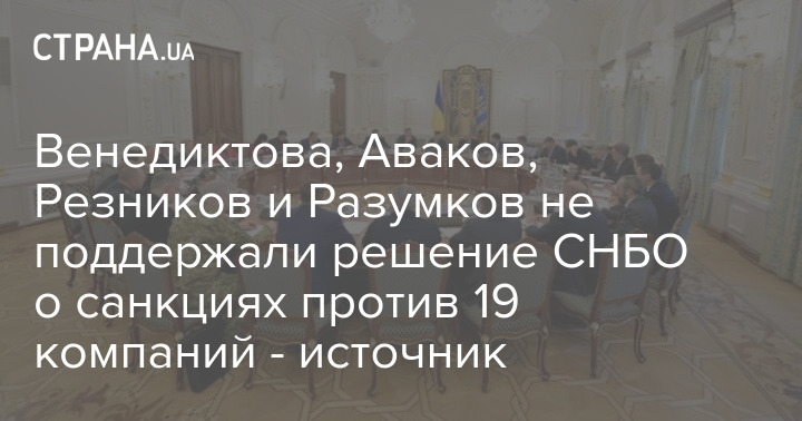 Венедиктова, Аваков, Резников и Разумков не поддержали решение СНБО о санкциях против 19 компаний - источник
