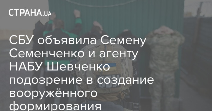 В Службе безопасности Украины заявили, что разоблачили и прекратили деятельность незаконного военизированного вооруженного формирования - частной военной компании. Она готовилась к совершению тяжких преступлений, в том числе против основ национальной безопасности. Ее организовали бывший народный депутат Семен Семенченко и агент НАБУ Евгений Шевченко.