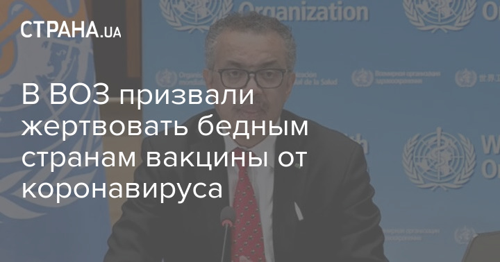 Генеральный директор Всемирной организации здравоохранения (ВОЗ) Тедрос Адханом Гебрейесус обратился к странам, у которых есть вакцины против коронавируса. Он призвал жертвовать препараты для более бедных государств.