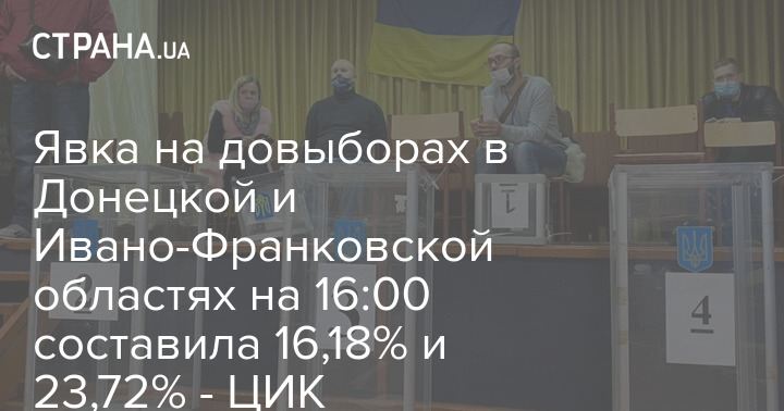 Явка на довыборах в Донецкой и Ивано-Франковской областях на 16:00 составила 16,18% и 23,72% - ЦИК