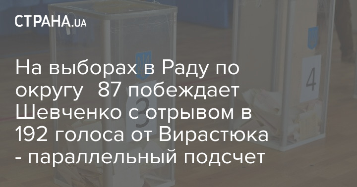 В распоряжении "Страны" оказались результаты параллельного подсчета штаба одного из кандидатов по 87-му округу (Ивано-Франковская область) на довыборах в Верховную Раду. Данные получены со 100% участков.