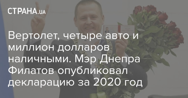 Вертолет, четыре авто и миллион долларов наличными. Мэр Днепра Филатов опубликовал декларацию за 2020 год