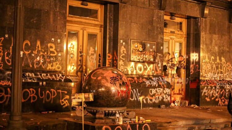 "Касательно свастики на стене Офиса президента. Символ действительно появился уже после завершения акции, в 23:35. Мы установили это лицо. Не буду раскрывать детали, пока должным образом не будут оформлены все процессуальные документы", - сказал глава Нацполиции.