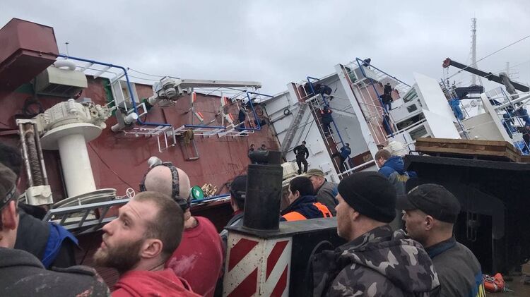 В России на судостроительном заводе опрокинулся траулер, двое людей пропали без вести. Фото и видео
