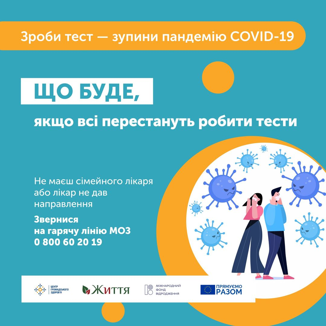 Сделайте тест - остановите пандемию COVID-19", - призвали в Центре общественного здоровья Украины.