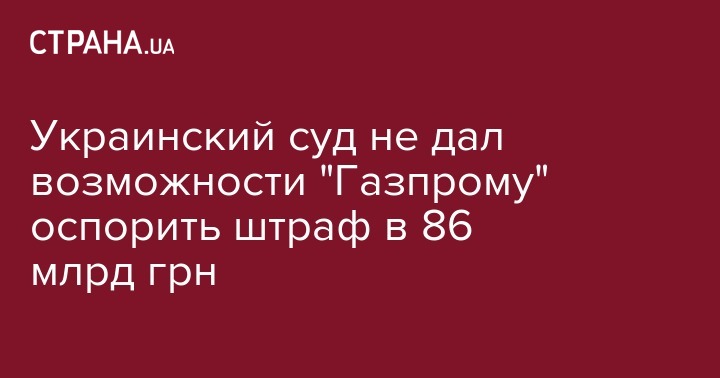 Как сообщала "Страна", "Газпром" оспорит в суде предъявленный Украиной штраф на 86 млрд гривен. Соответствующий иск представители "Газпрома" зарегистрировали 12 апреля в Хозяйственном суде Киева. Ответчиками в судебном деле определены крупнейший в Украине государственный энергетический холдинг «Нафтогаз Украины» и подконтрольная ему компания "Укртрансгаз".