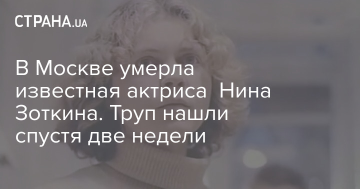 В Москве умерла актриса театра и кино Нина Зоткина. Ей было 69 лет. Об этом сообщил режиссер Михаил Дегтярь в социальной сети Facebook.