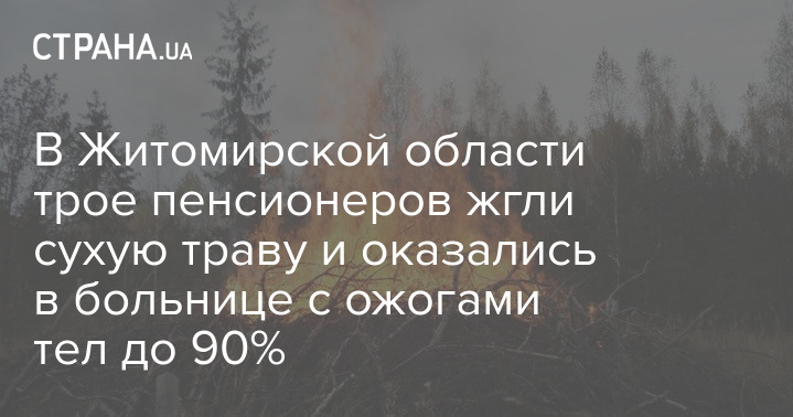 В первый день апреля в Житомирской области трое пенсионеров сжигали сухую траву и получили серьезные ожоги. 80-летний мужчина обжог около 70-90% тела.